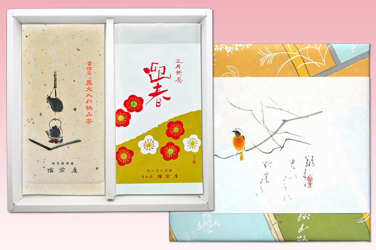 季節商品『正月新茶』と冬季専用ギフトの発売 2025/12/07 師走を迎え、萎凋香煎茶『正月新茶』を、またこの季節ならではのギフト用品を発売しました。 【正月新茶 90gアルミパック】 【送料込み 正月新茶90g アルミパック】 【正月新茶+炭火入れ狭山茶】