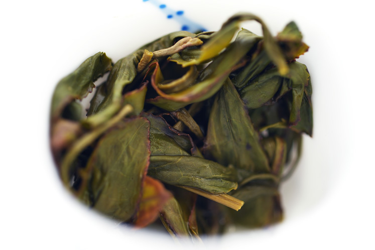 茶葉の縁に現れた赤い部分が、日光萎凋と醗酵の効果を物語っています。
