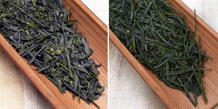 【外観比較】左:炭火入れ狭山茶、右:正月新茶