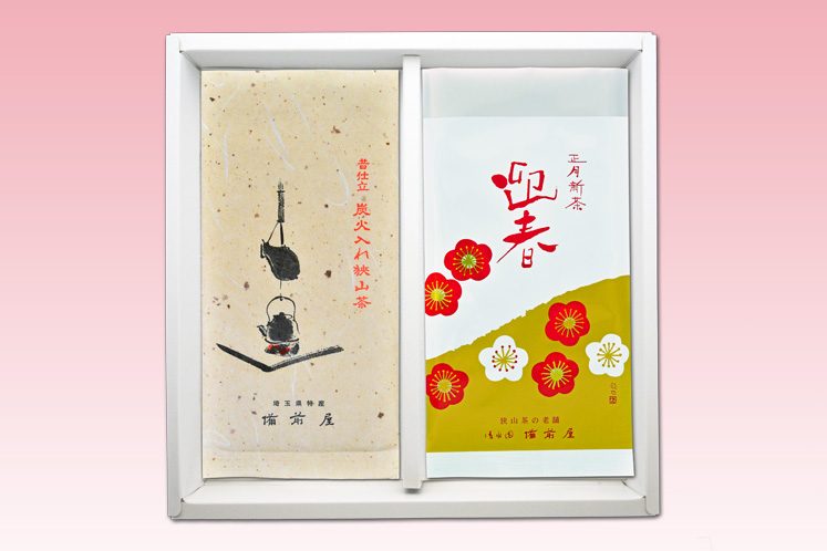 【パッケージ】左:炭火入れ狭山茶、右:正月新茶